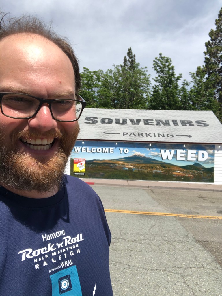 As I left the Oregon coast, I knew I wanted to go to Albuquerque. That was the next goal. I stayed near the Oregon \ California border. From there it was time to stop at Weed, CA. I mean, you have to right? It was a one t-shirt shop town. I mean, you could not have two Weed, Ca shops. I didn’t see another one so, I stopped. Did the normal, “I love Weed, Ca” stuff. Grabbed a couple of souvenirs and post cards.