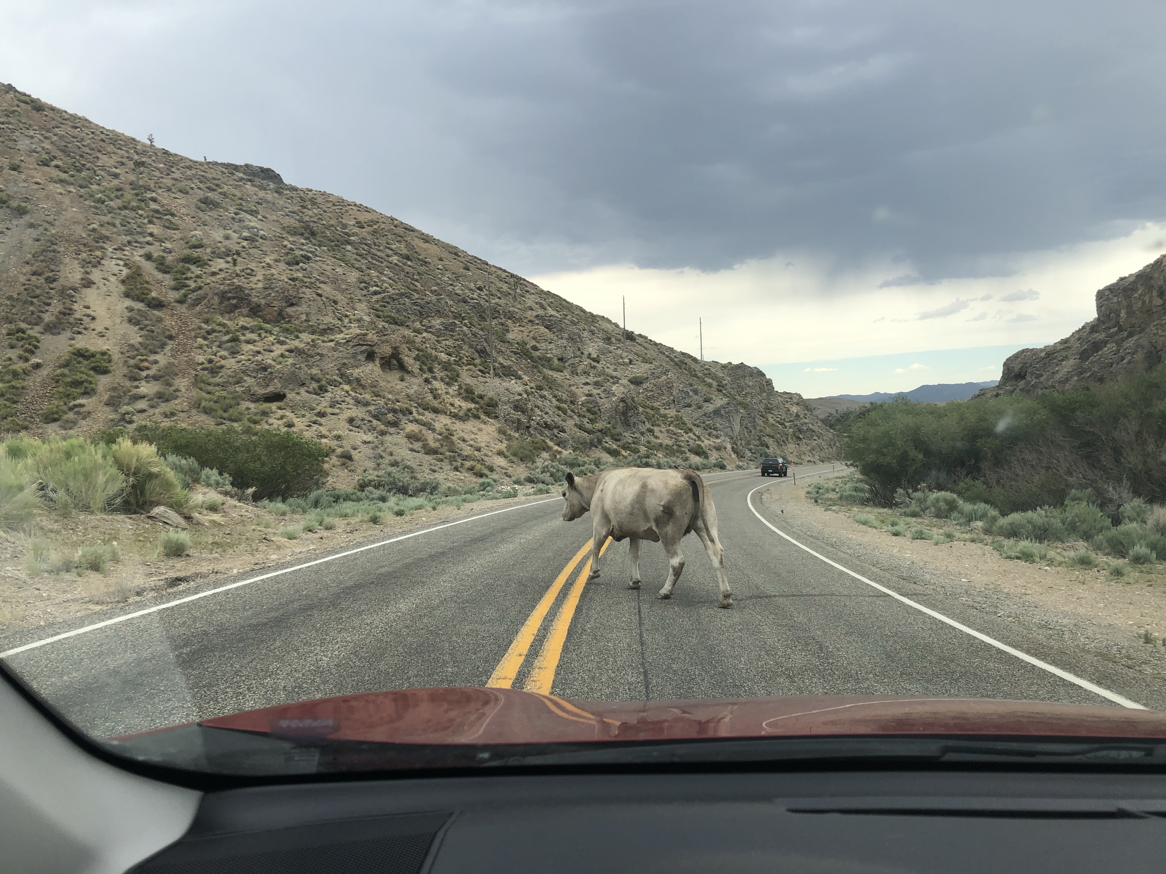 Okay, off to Vegas. 8 hr drive thou the desert. It was exactly that. Need to see the desert changes. The worlds largest ammo depot, Nevada testing range and more sand. Oh, a few cattle and horses. More desert and then the lighting in the distance from a thunderstorm. Tumbleweed blew by, wha wha wha.. music.