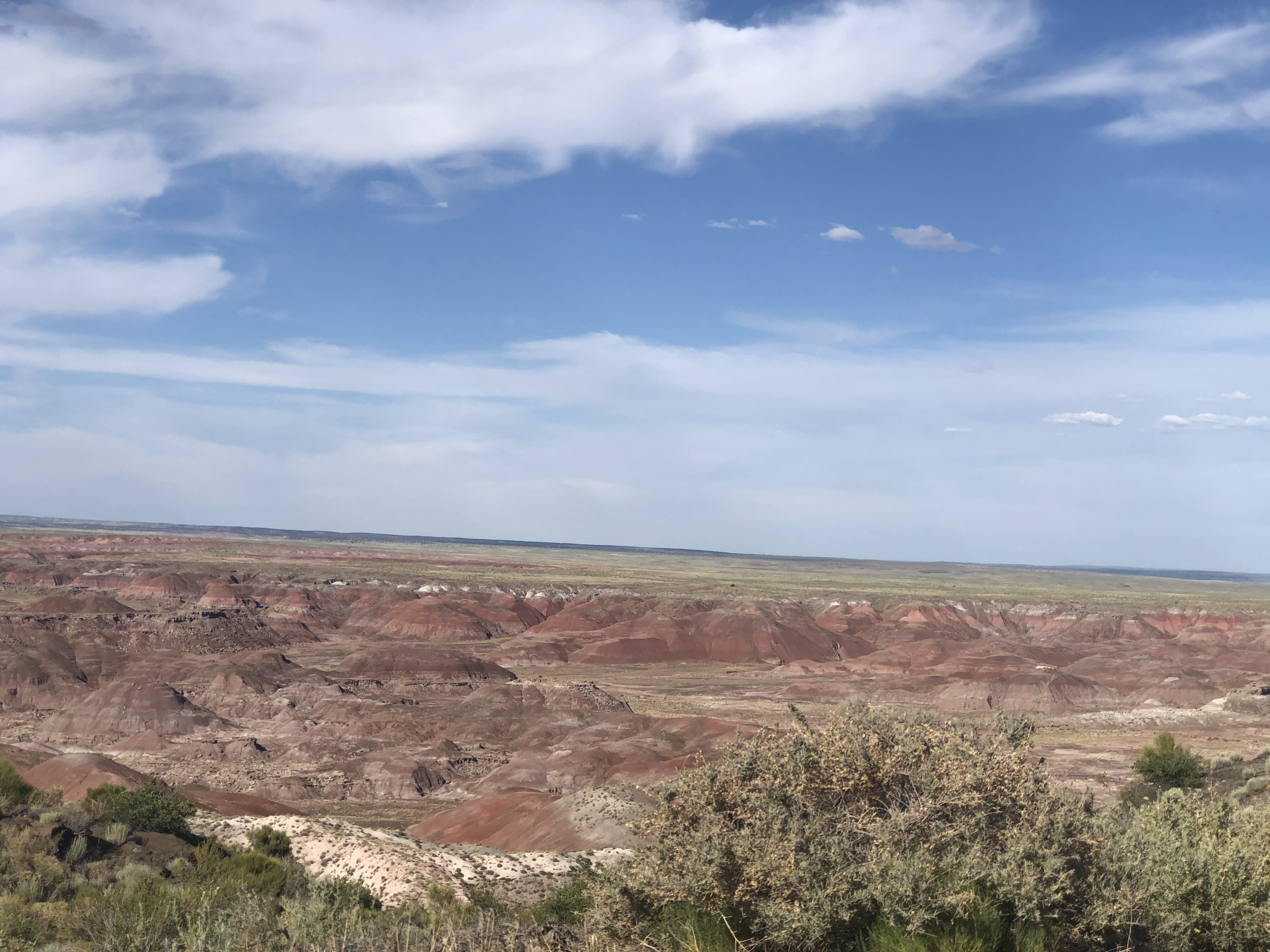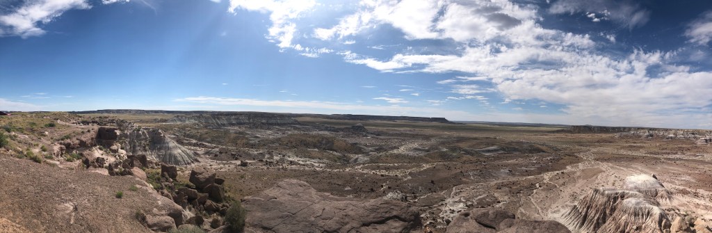 Cutting across Arizona a quick stop for gogo juice in Flagstaff. It didn’t look like the last time I was there. When Shell and I was at the 17’ Final Four, we did a sidebar to the Grand Canyon and stayed in Flagstaff. It snowed that night. Not today, lots of traffic and hot. Along the way is the Petrified Forest National Park. I thought that would be a nice cool spot in some shade along the desert to Burque.