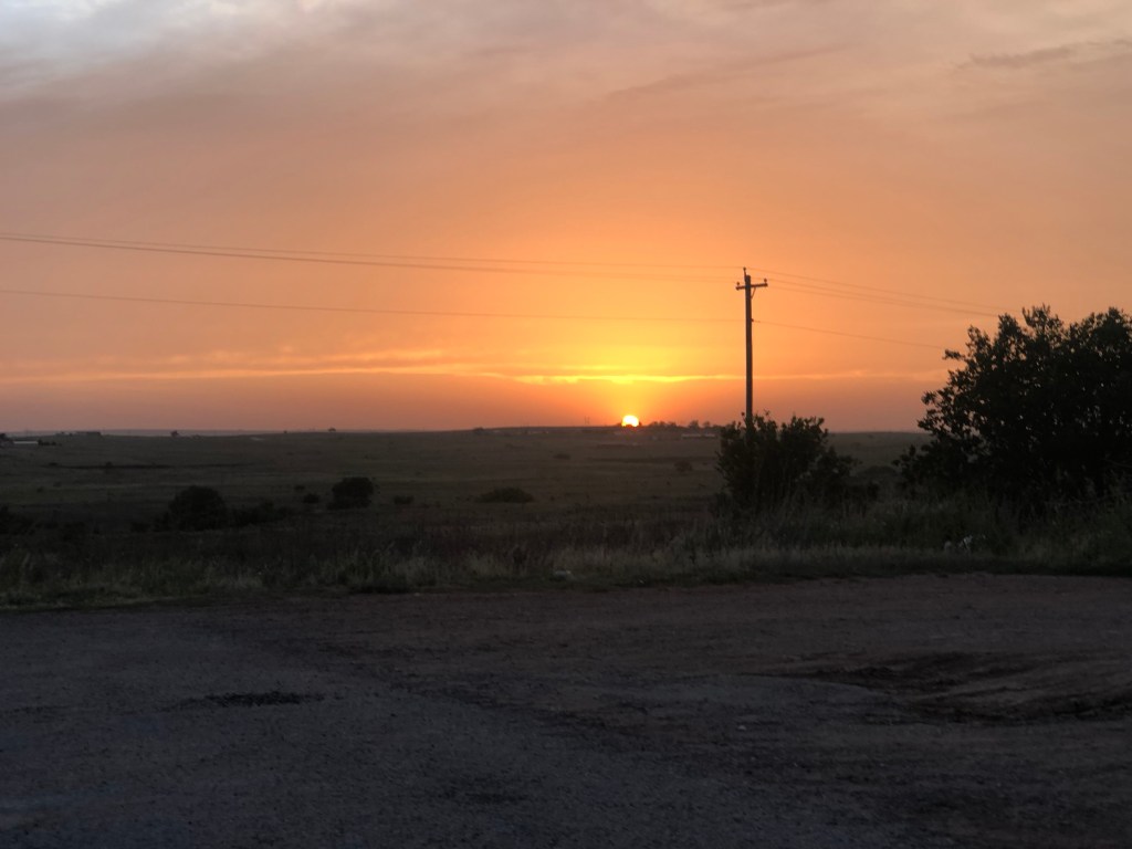 I headed out of ABQ to OKC. Along the way in Texas I had one of the best sunsets I’ve ever seen. The sun along the horizon not wanting to go. It was that bright circle you can stare at like in Key West and just enjoy. The distant rattle of the rattlesnake and quietness of North Texas. Almost halfway home.