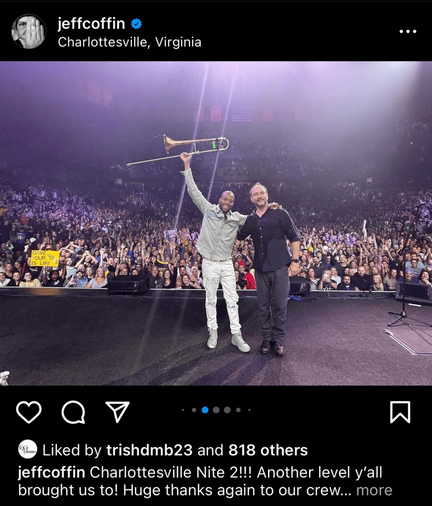 Dave in Charlottesville, 11/11 Posted byjoeydosterNovember 12, 2023Posted inUncategorizedTags:Charlottesville, Dave Matthews Band, DMB, Trombone Shorty Make a wish… Share this: Share on X (Opens in new window) X Share on Facebook (Opens in new window) Facebook Like Loading... Related